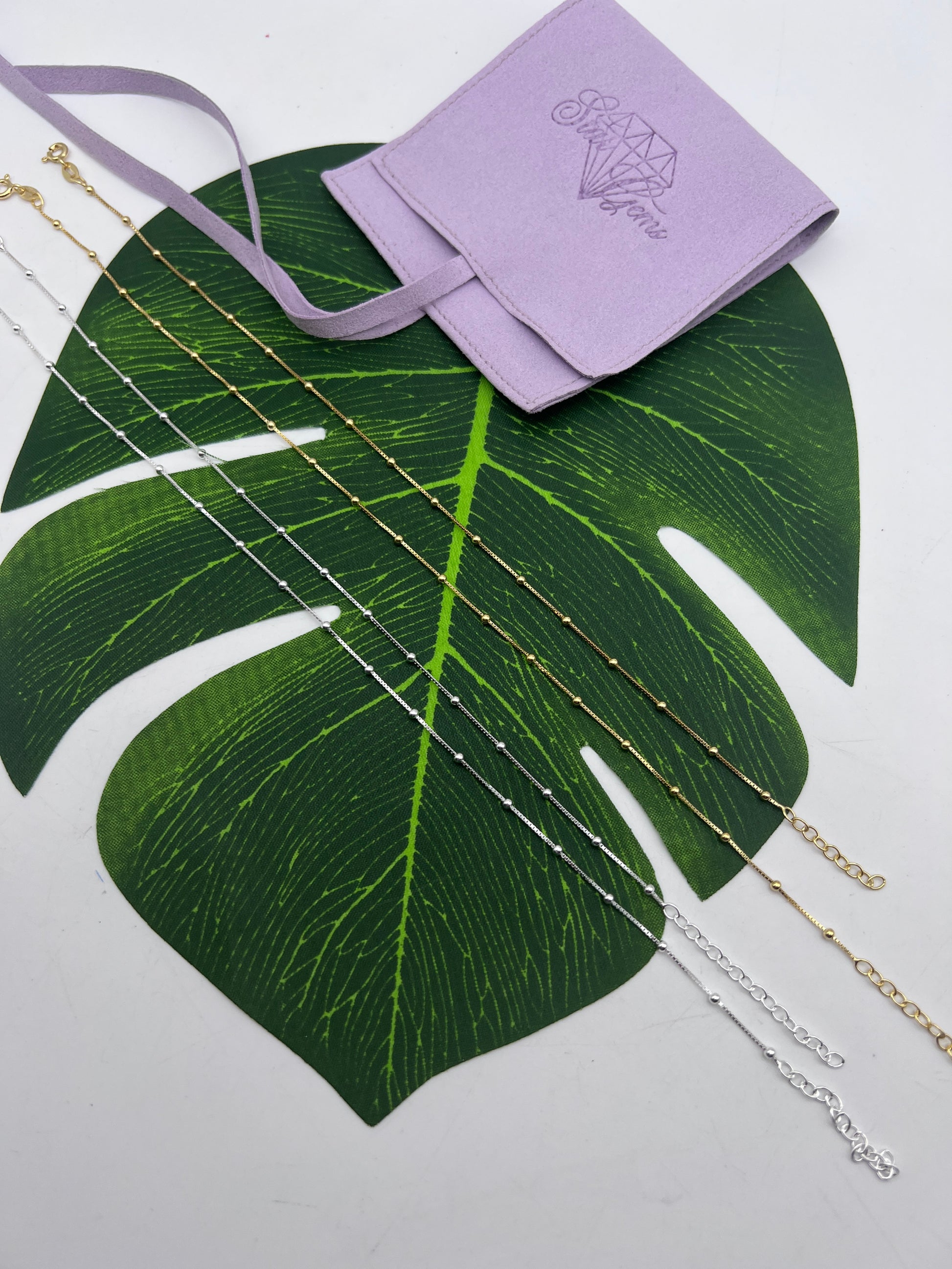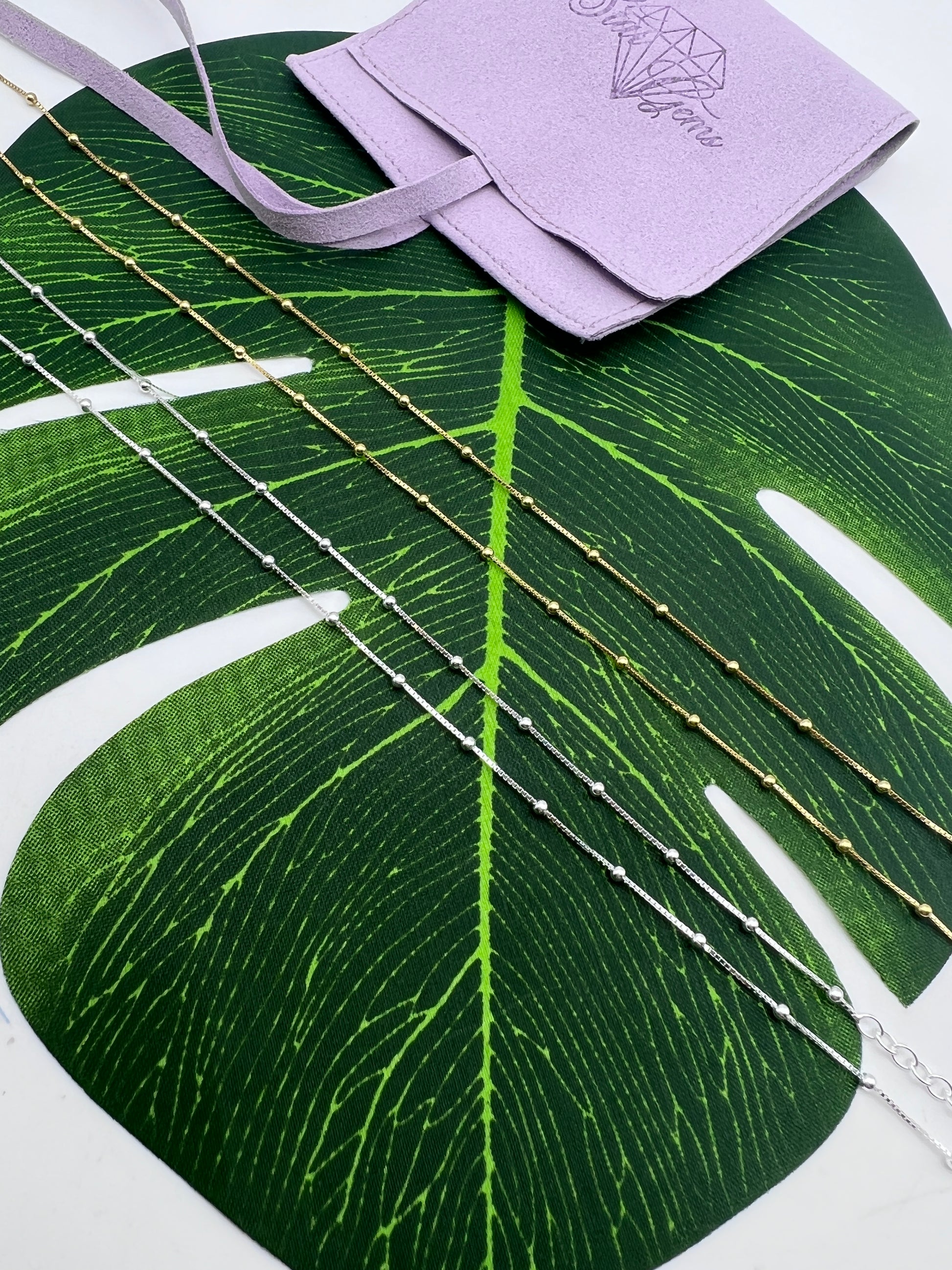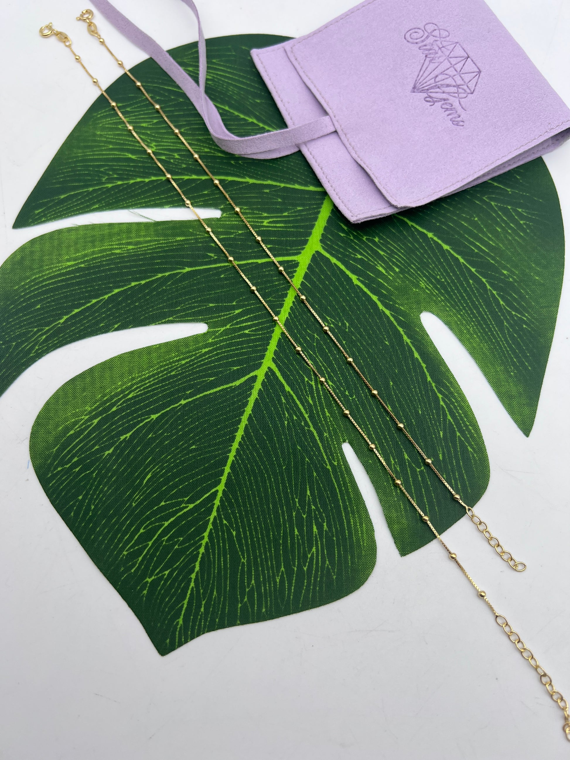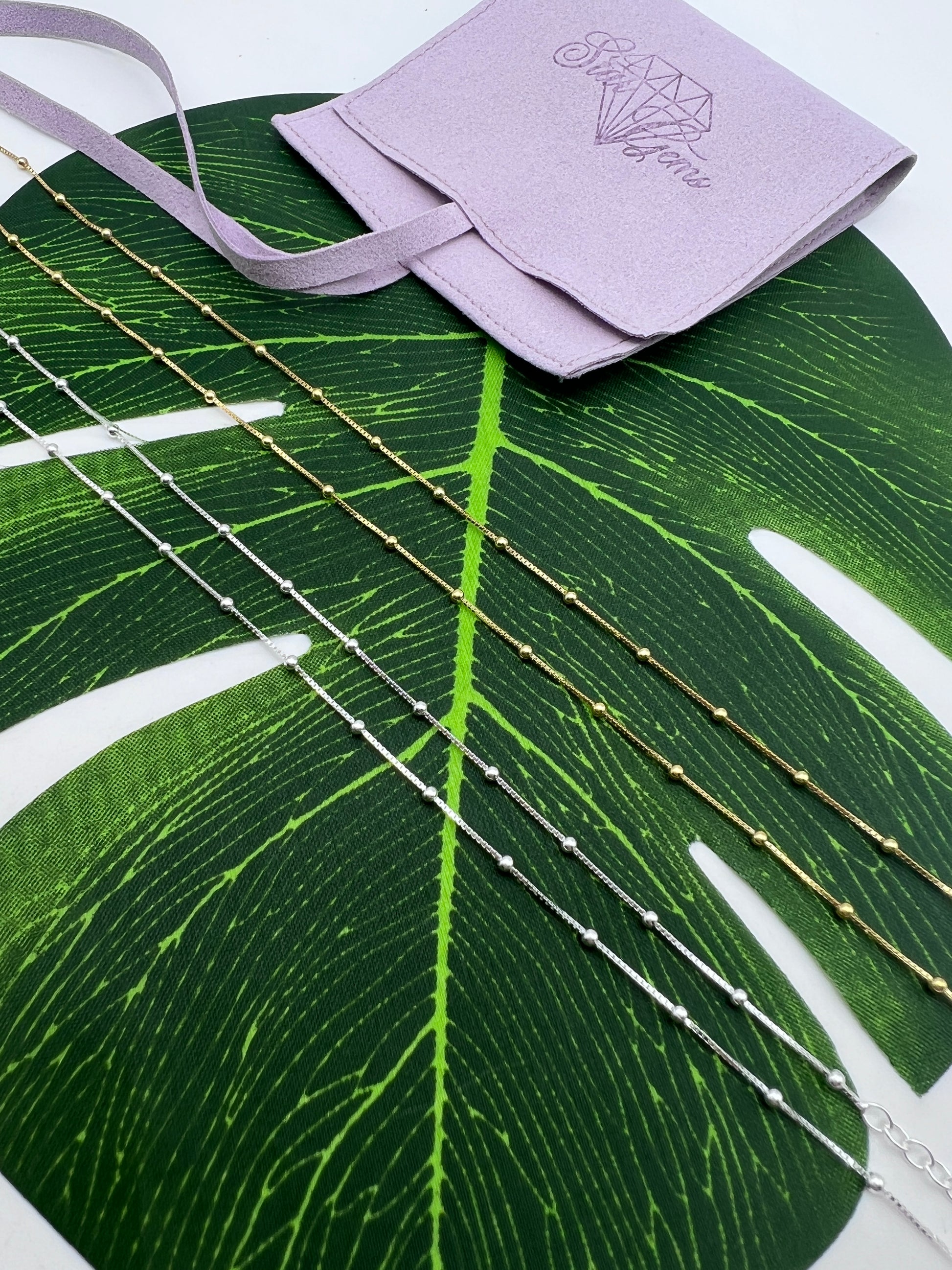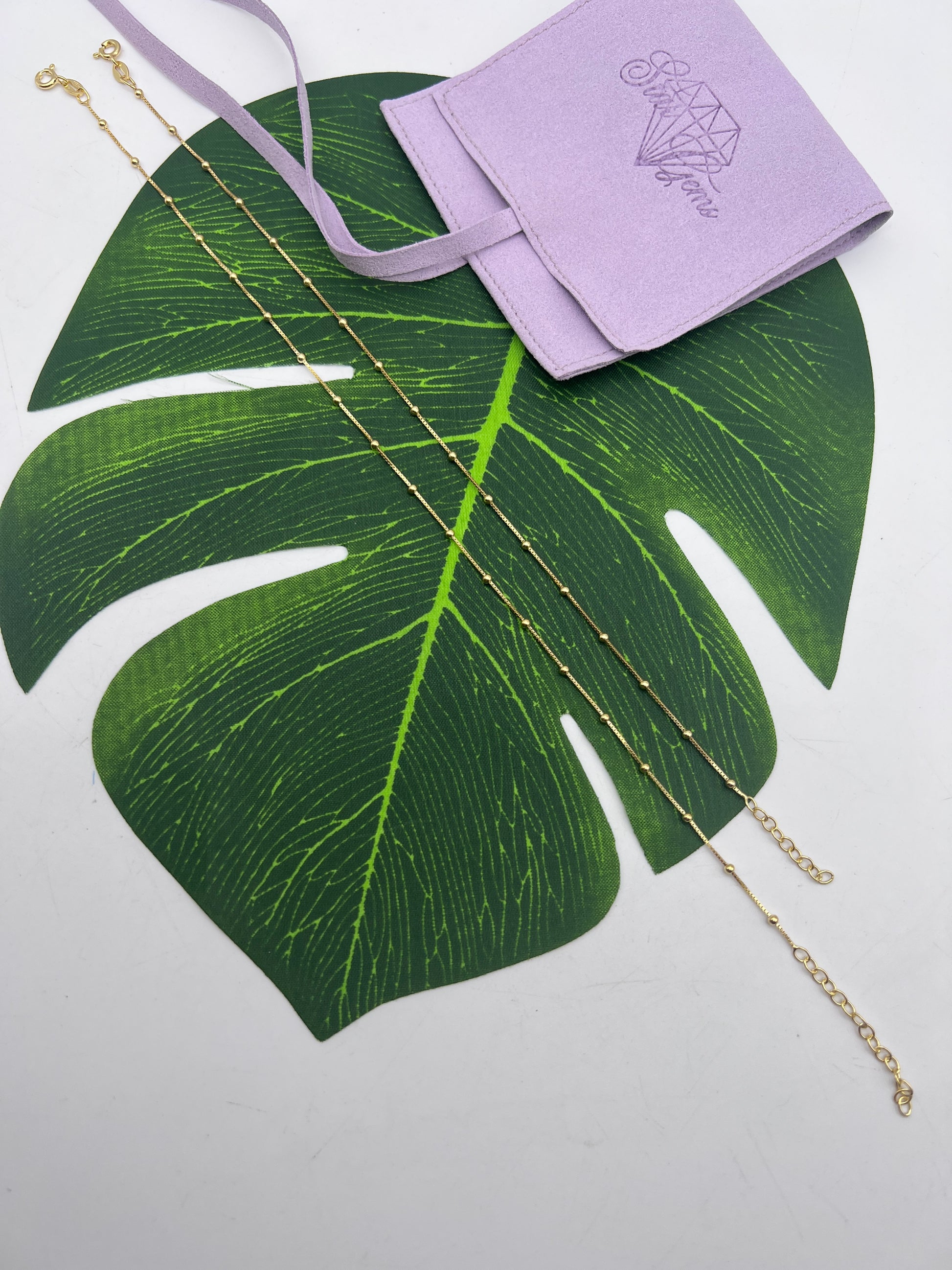 Adorn your delicate ankles with this delicate satellite Anklet! This beautiful piece of jewellery not only looks lovely on any beach holiday but also worn all year round in the uk!