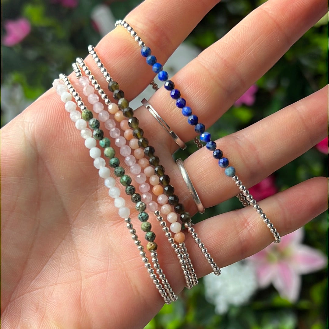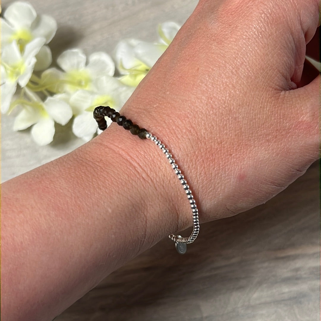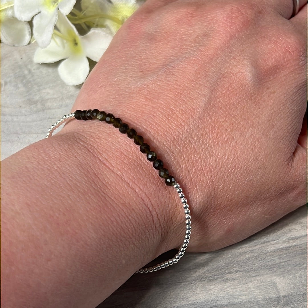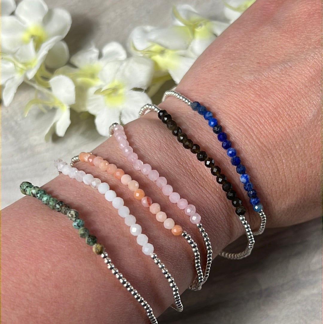 Sterling Bead & Facet Crystal Bracelet - elastic 925 Sterling Silver