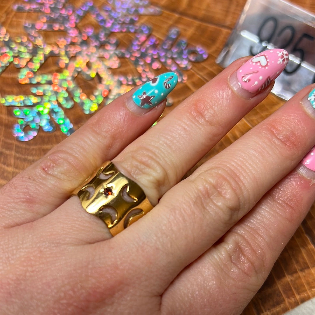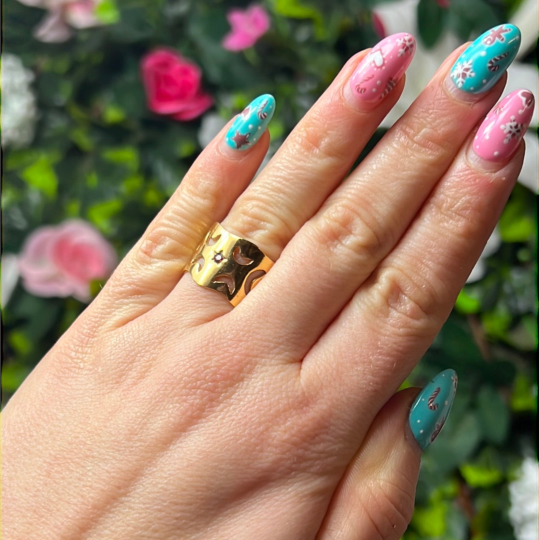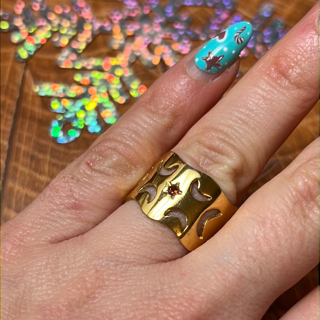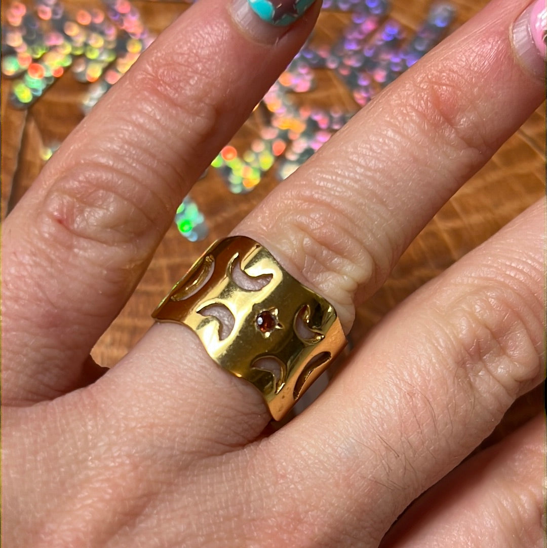 Tala Lani Ruby Moon - 22ct Gold Plated 925 Sterling Silver Ring - Size O