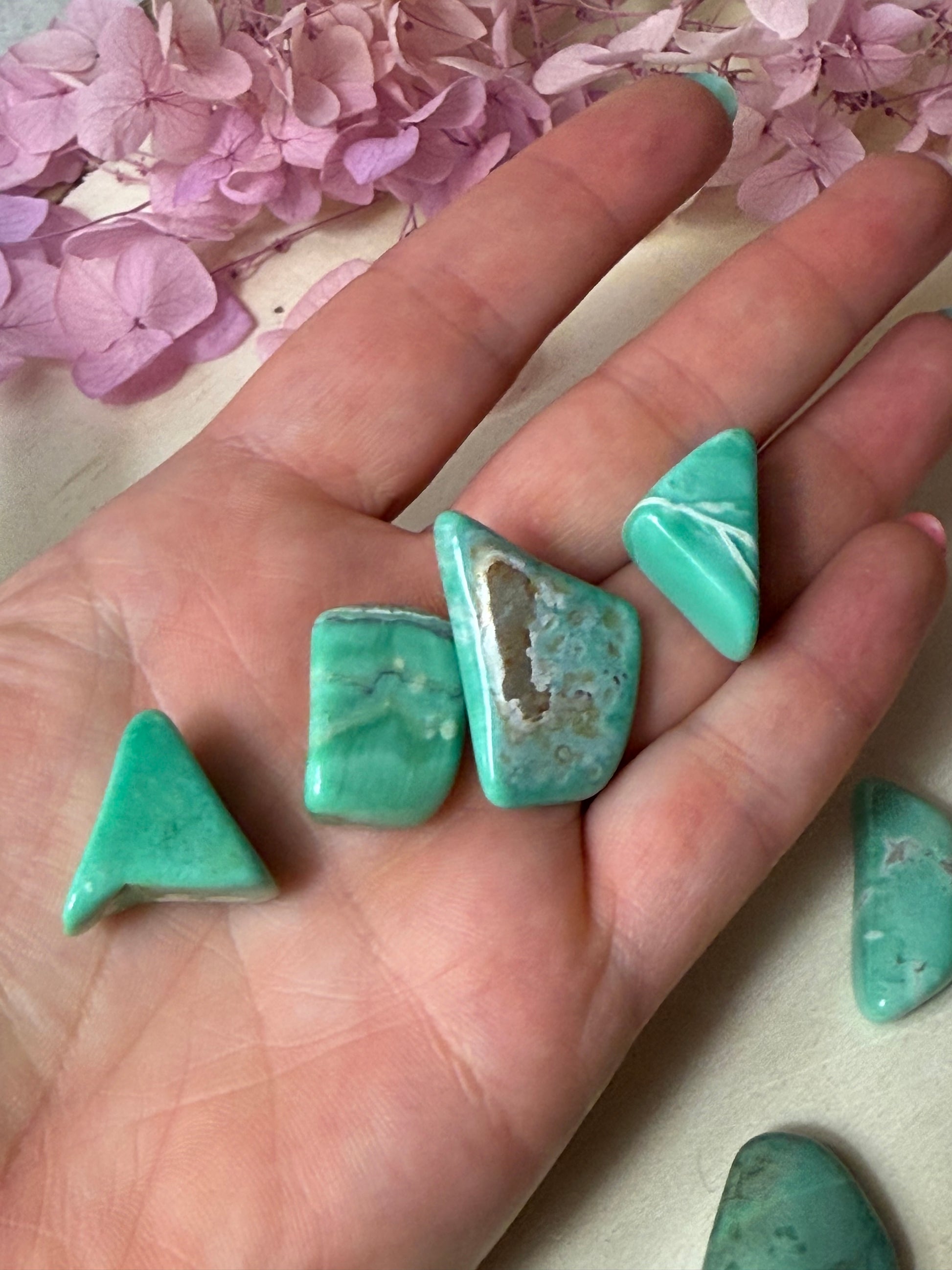Variscite works with the heart chakra but also is believed to help brain-related functions, improving intellect and logic. Not only that, but variscite is said to calm the brain by relieving stress and anxiety.