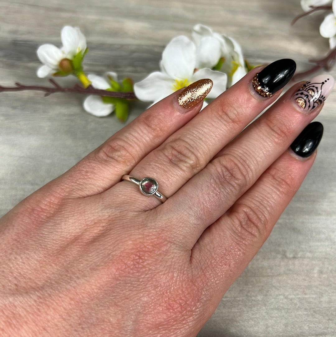 Watermelon Tourmaline 925 Ring - Size L 1/2