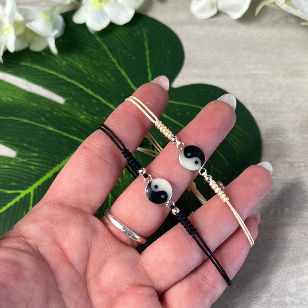 Ying Yang Sterling 925 Silver Adjustable Bracelet