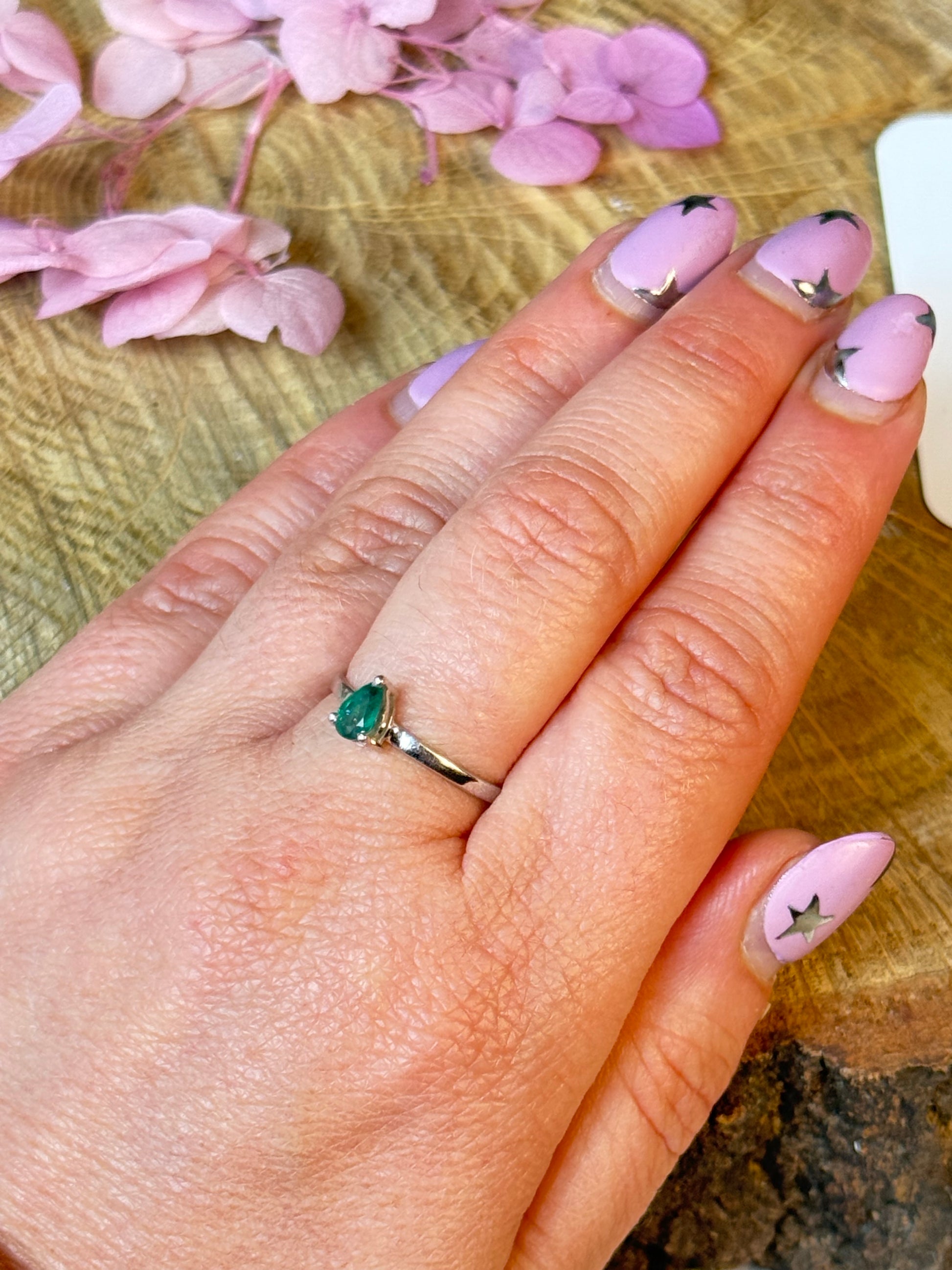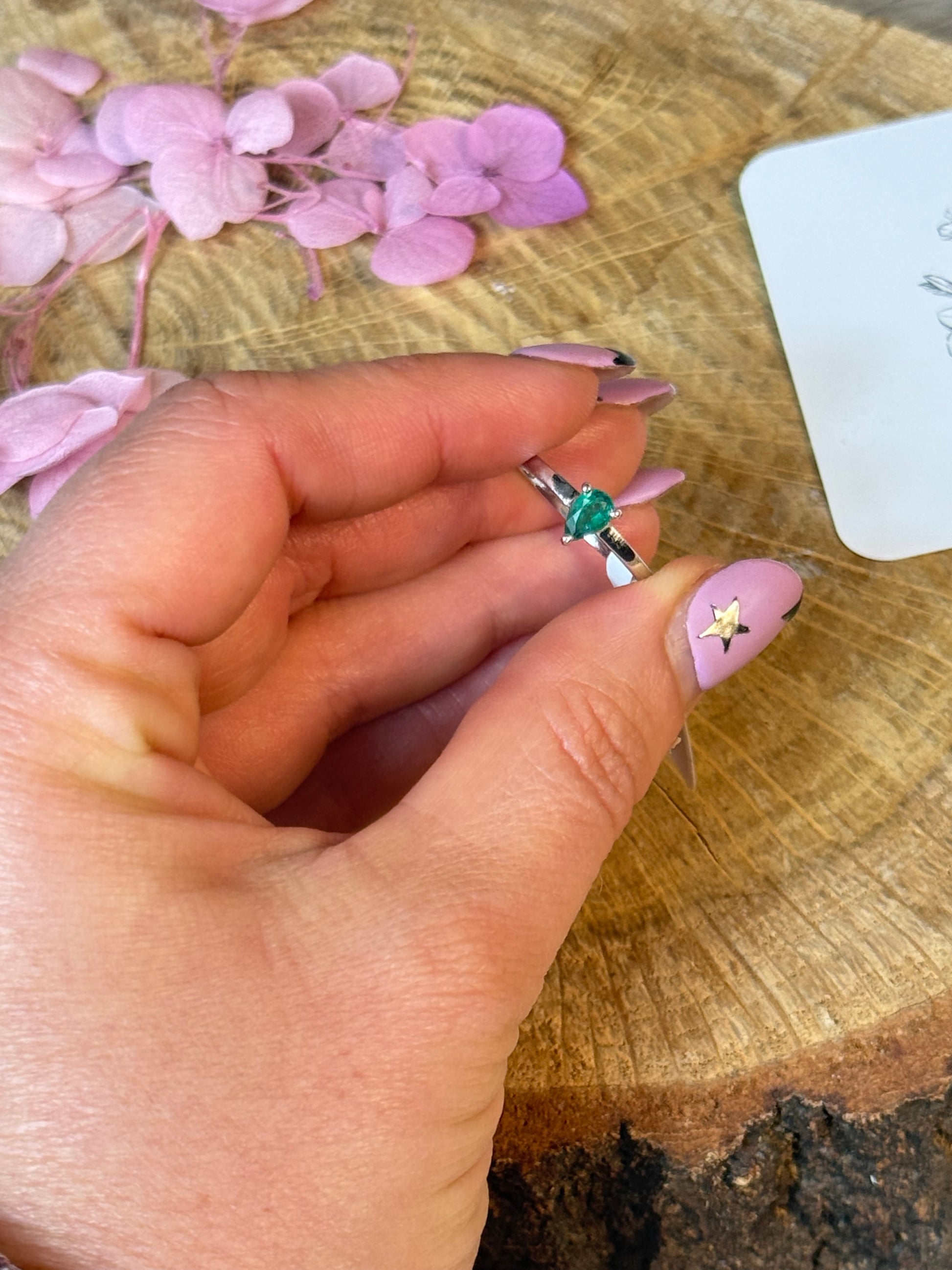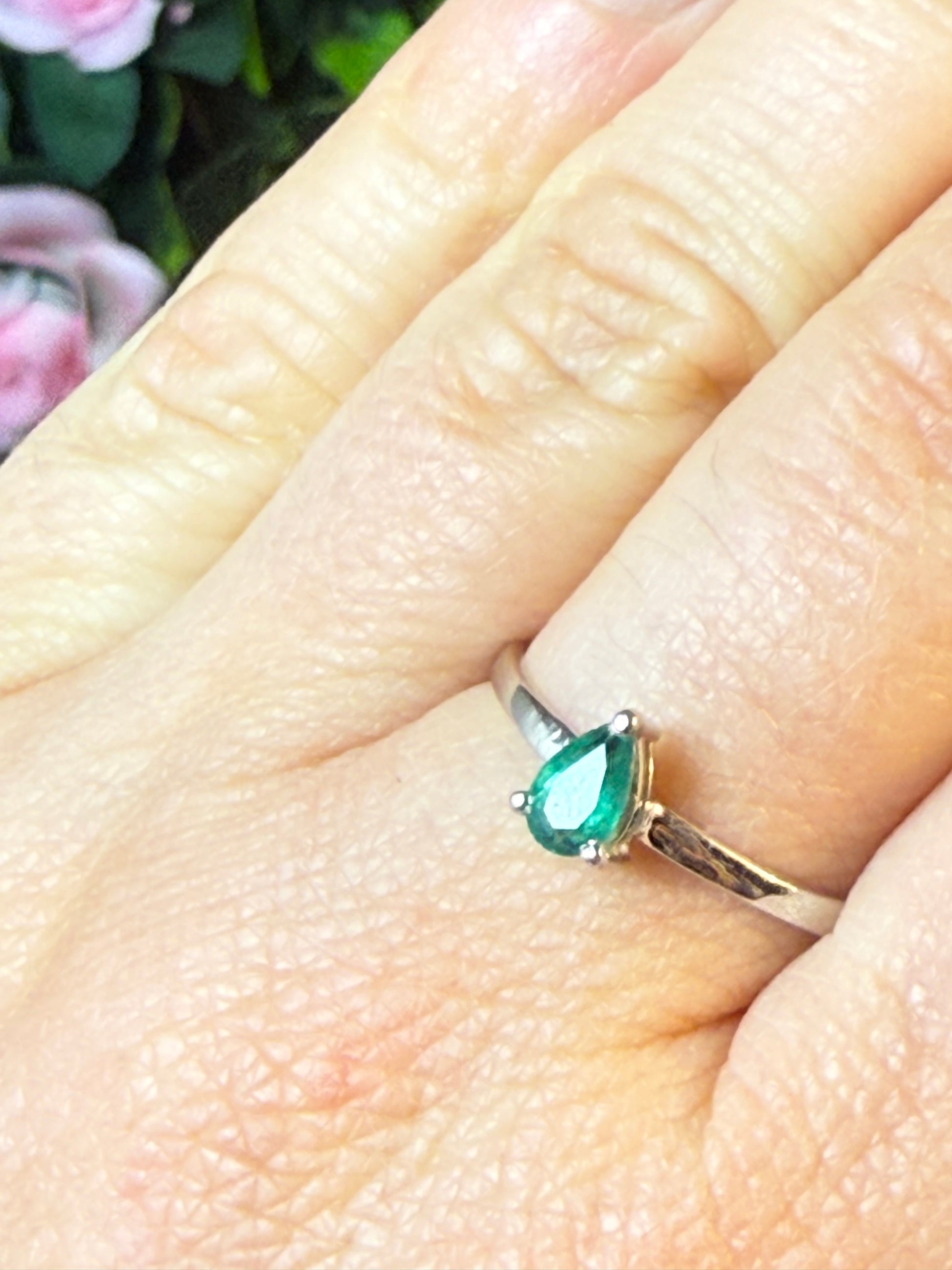 Zambian Emerald - Rare 925 Silver Ring - Size P 1/2